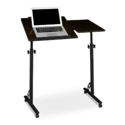 Laptoptisch (groß) aus Holz Einfach dort arbeiten, wo es Ihnen gerade am besten passt. Mit diesem mobilen Laptopständer lässt es sich mit dem eigenen Rechner schnell bequem machen. Der Beistelltisch hat 2 neigbare Arbeitsflächen, auf denen Platz für Beamer, Notebook, Mäuse, Getränke und Notizen sind. Durch die 4 bremsbaren Rollen ist der Beistelltisch leicht zu transportieren und steht sicher zu gleich. Das hochglanz lackierte Holz ist äußerst robust. Sie haben die Auswahl zwischen 3 eleganten Farben Mahagoni, Ebenholz und Eiche. Unabhängig davon welchen Notebookwagen Sie auswählen – er stellt eine Bereicherung für Ihre Wohnung dar.