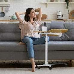 Laptop Beistelltisch mit Rollen Wenn Sie gerne im Bett oder vom Sofa aus am Laptop arbeiten, sind Sie mit diesem Multifunktionstisch genau richtig beraten. Das flache Untergestell lässt sich einfach seitlich unter die Couch oder das Bett schieben, so dass Sie den Laptop Beistelltisch ideal platzieren können. Zusätzlich lässt sich die höhenverstellbare Tischplatte perfekt an die jeweilige Sitzgelegenheit anpassen. Die Arbeitsfläche kann in zwei Richtungen geneigt werden und ist mit einer separaten Mausablage ausgestattet.