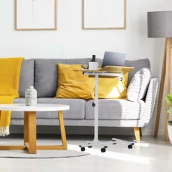 - Mobil: Notebook Arbeitstisch mit 5 Rollen zum einfachen Verschieben – 2 Rollen mit Feststellbremse