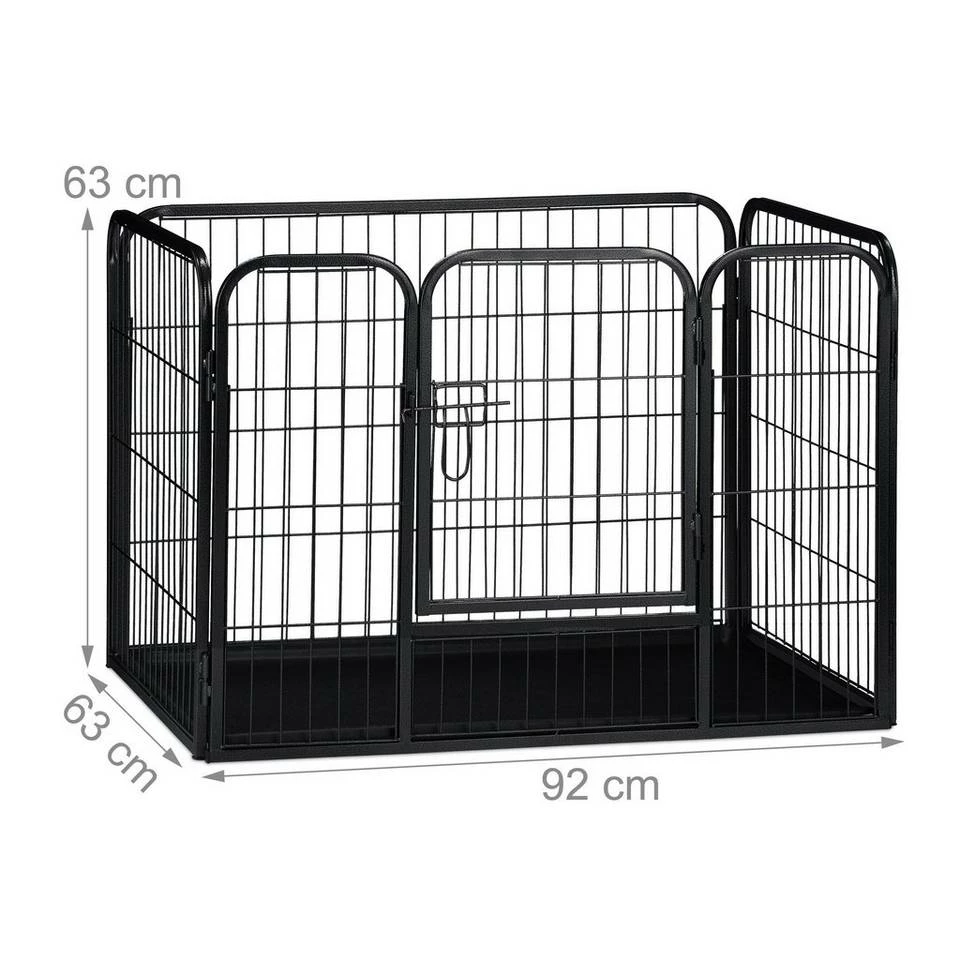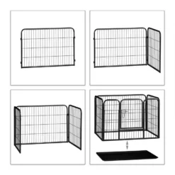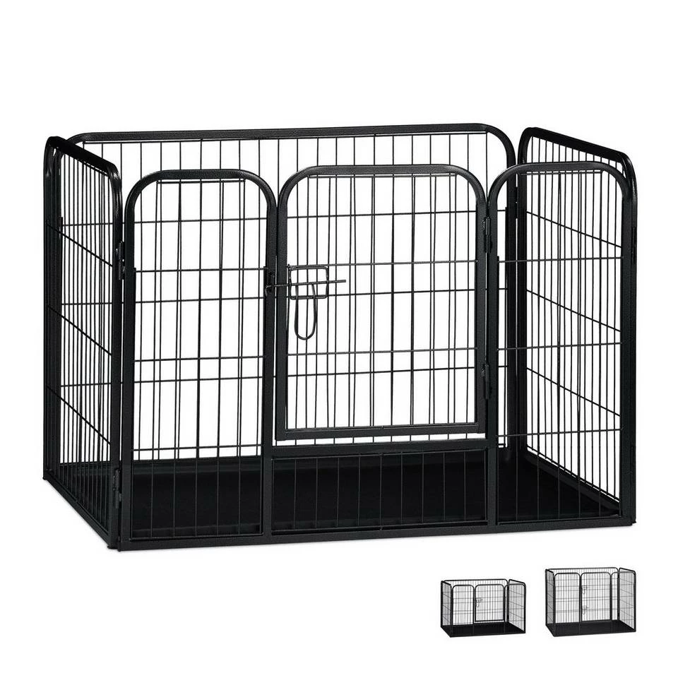 - Details: Stabiles Welpengehege aus pulverbeschichtetem Stahl – In Schwarz – Rechteckige Grundform