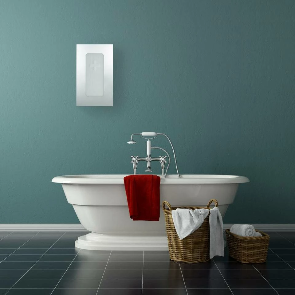 - Hochwertige Optik: Mit ihrem hochglänzenden Edelstahl-Gehäuse fügt sich die Hausapotheke bestens ein