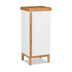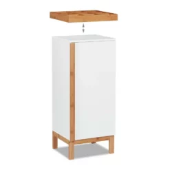 - Design: Badregal mit Korpus in Weiß inklusive 2 Fächern und abnehmbarem Organizer aus Bambus