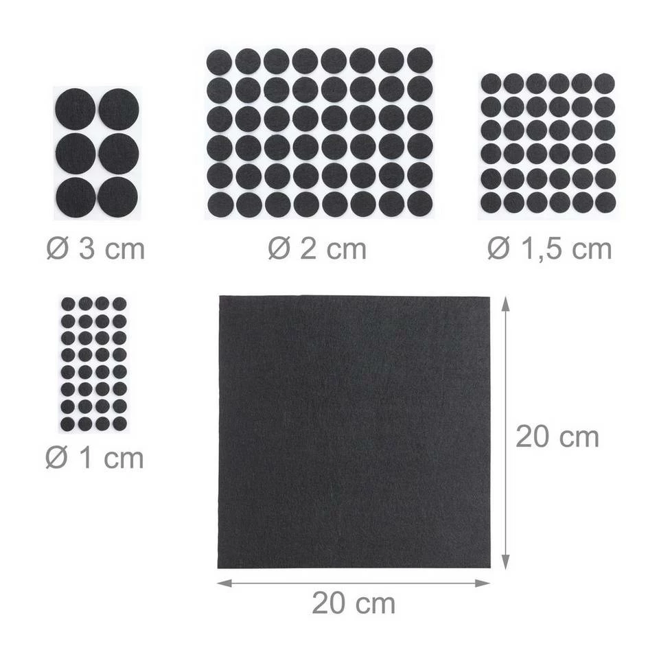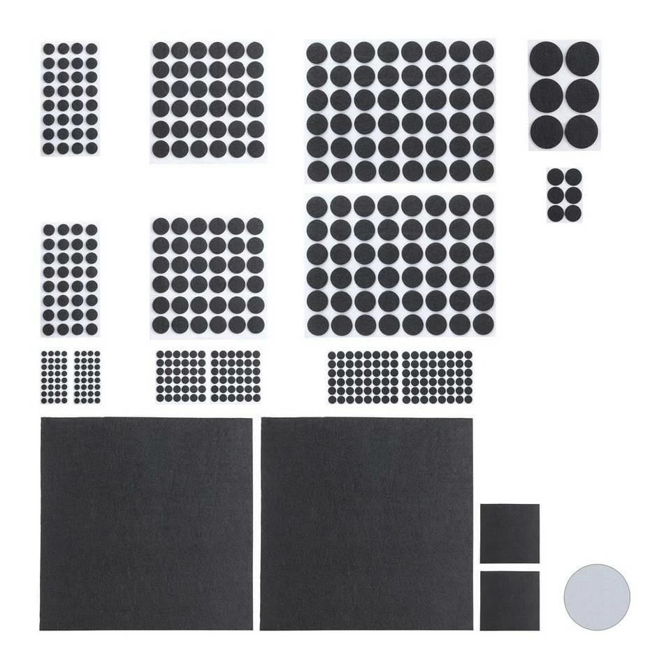 Runde Möbeluntersetzer aus Filz Mit den Filzgleitern im 480er Pack sorgen Sie dafür, dass Ihre Möbel durch das alltägliche Verrücken nicht beschädigt und empfindliche Parkett-, Laminat- oder Fliesenböden nicht zerkratzt werden. Die Pads sind selbstklebend: Einfach von der Folie abziehen und anbringen. 476 runde Möbelgleiter in 4 verschiedenen Größen umfasst das Set, aber auch 4 Filzplatten, die Sie wunschgemäß zuschneiden können.
