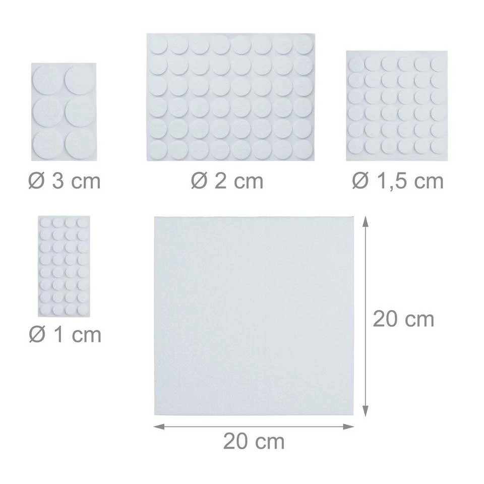 Runde Möbeluntersetzer aus Filz Mit den Filzgleitern im 240er Pack sorgen Sie dafür, dass Ihre Möbel durch das alltägliche Verrücken nicht beschädigt und empfindliche Parkett-, Laminat- oder Fliesenböden nicht zerkratzt werden. Die Pads sind selbstklebend: Einfach von der Folie abziehen und anbringen. 238 runde Möbelgleiter in 4 verschiedenen Größen umfasst das Set, aber auch 2 Filzplatten, die Sie wunschgemäß zuschneiden können.