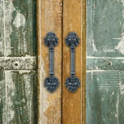 Rustikale Schrankgriffe mit Löwenkopf-Ornament Für DIY-Möbelbauer & jeden, der sein vorhandenes Mobiliar mit etwas Vintage Charme veredeln möchte, sind diese rustikalen Metalltürgriffe aus Gusseisen genau die richtige Wahl. Mit ihrem Shabby Chic Look verleihen die Griffe Schränken, Kommoden & Schiebetüren einen antiken Touch, die dekorativen Löwenkopf-Ornamente sorgen für einen extra Hingucker. Dabei ist es völlig egal, in welchen Raum sie die Retrogriffe integrieren – als Küchengriffe machen sie ebenso eine gute Figur wie am Kleiderschank.