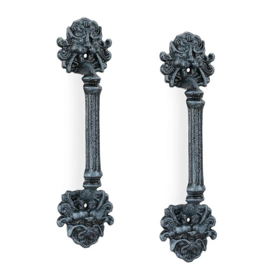 - 2 Stück: Antike Möbelgriffe mit Löwenkopf-Ornament im 2er Pack – Rustikales Design in Dunkelgrau