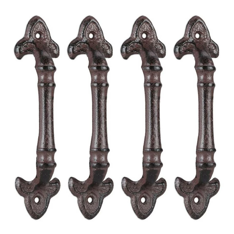 - 4 Stück: Antike Möbelgriffe mit Lilien-Ornament im 4er Pack – Rustikales Design in dunklem Braun