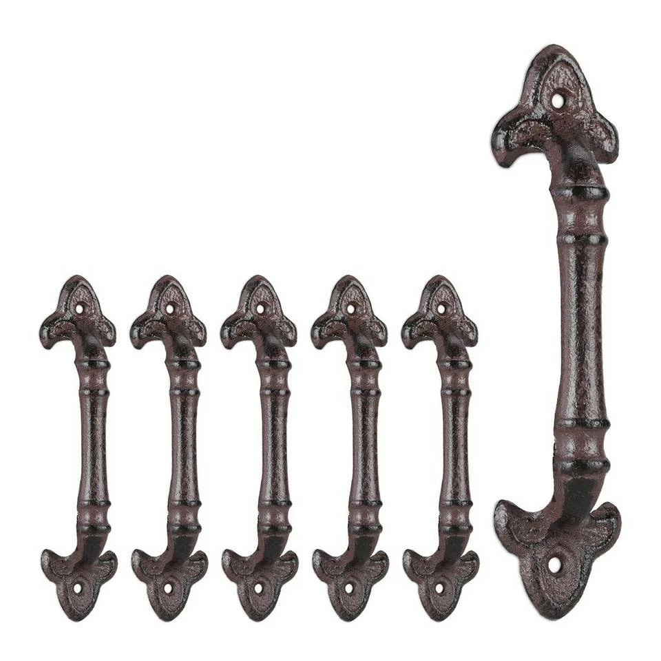 - 6 Stück: Antike Möbelgriffe mit Lilien-Ornament im 6er Pack – Rustikales Design in dunklem Braun