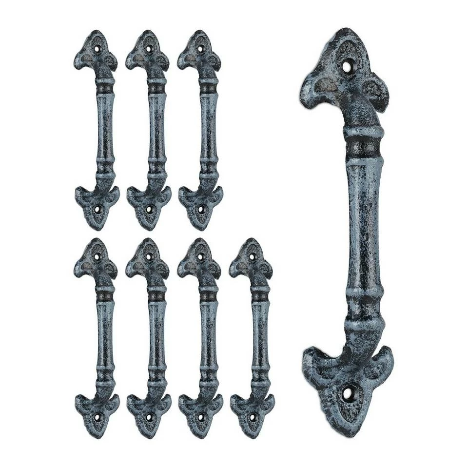- 8 Stück: Antike Möbelgriffe mit Lilien-Ornament im 8er Pack – Rustikales Design in dunklem Grau