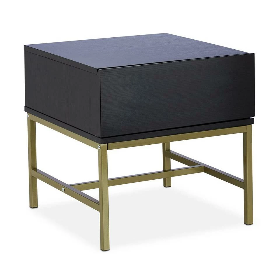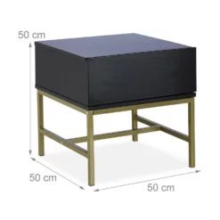 - Design: Schwarzer Dekotisch mit goldenem Metallgestell – Quadratische Form ist besonders platzsparend