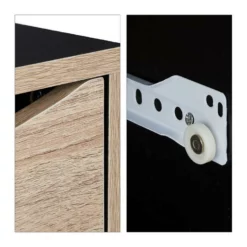 - Details: Nachtkästchen mit schwarzem Metallgestell und Korpus in Holzoptik – HBT ca. 50 x 39 x 35 cm
