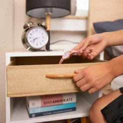 - Herausnehmbares Schubfach: Entnehmbare Stoffbox kann platzsparend gefaltet werden – Mit Holzgriff