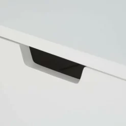 Niedrige Nachtkonsole im nordischen Design Neben dem Bett gehört eine Nachtkommode – damit der Wecker, die Abendlektüre und eine Lampe in Reichweite untergebracht werden können. Mit dem Nachtkästchen in Weiß holen Sie sich modernes Design mit einem skandinavischen Touch in das Schlafzimmer oder ins Jugendzimmer. In der Schublade mit Griffschlitz ist zudem genügend Raum für Socken, Unterwäsche, Medikamente oder andere Kleinigkeiten. Das Nachttischchen ist spielend leicht aufgebaut und steht dank der 4 schrägen Beine aus Holz stabil.