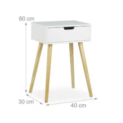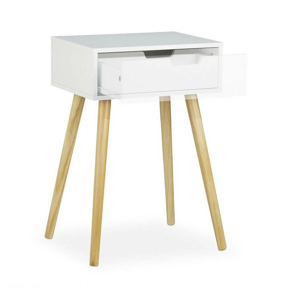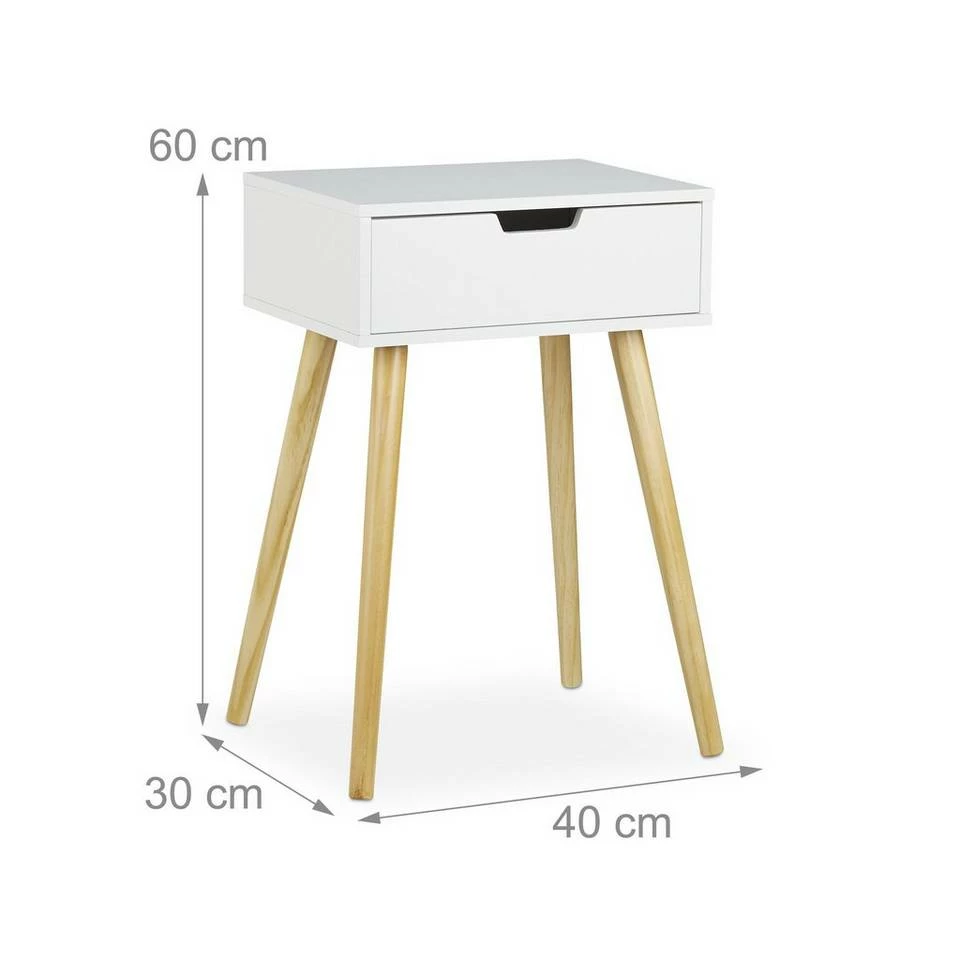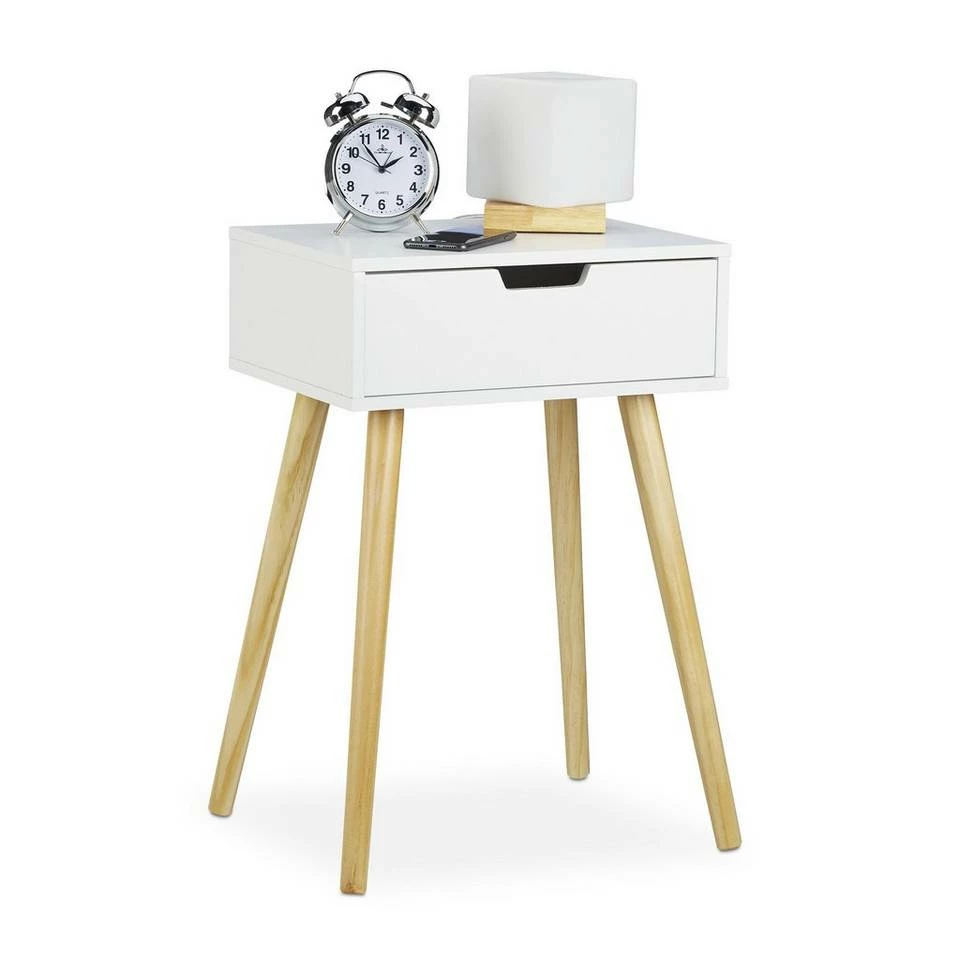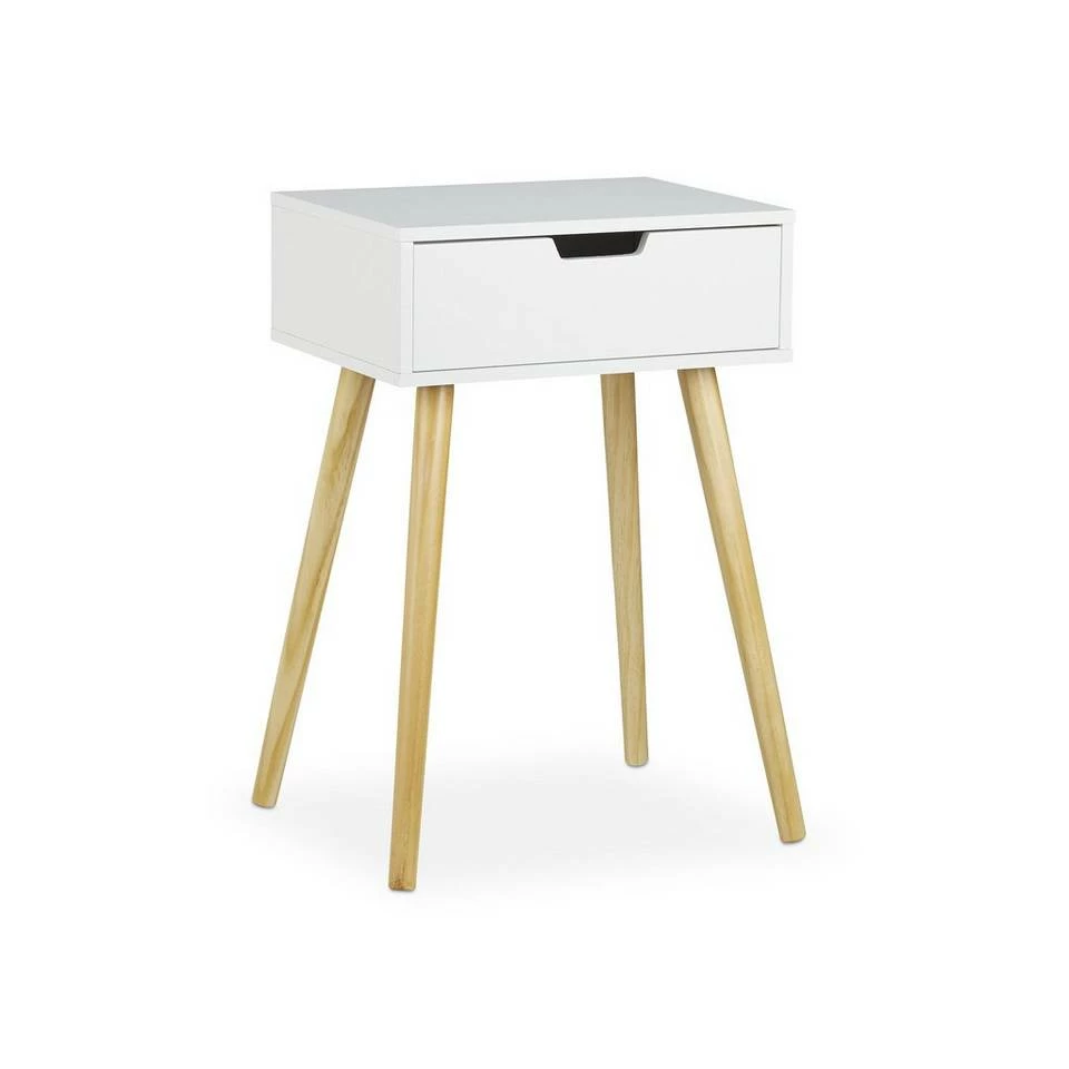 - Modernes Design: Das Nachtschränkchen mit weißem Korpus u. Holzbeinen versprüht skandinavisches Flair