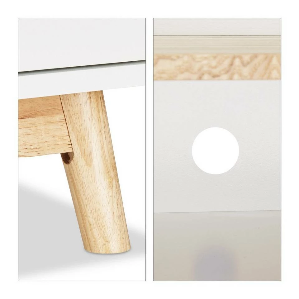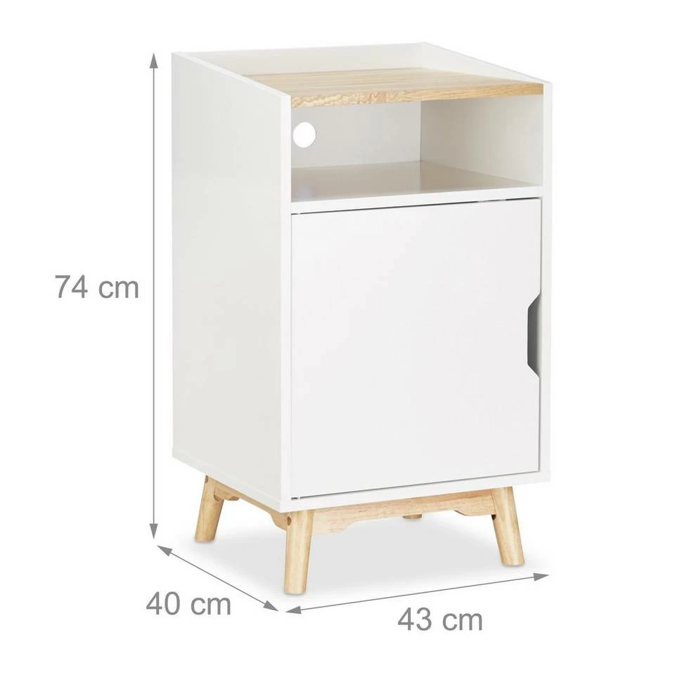 - Modernes Design: Das Nachtschränkchen mit weißem Korpus und Naturplatte hat skandinavisches Flair