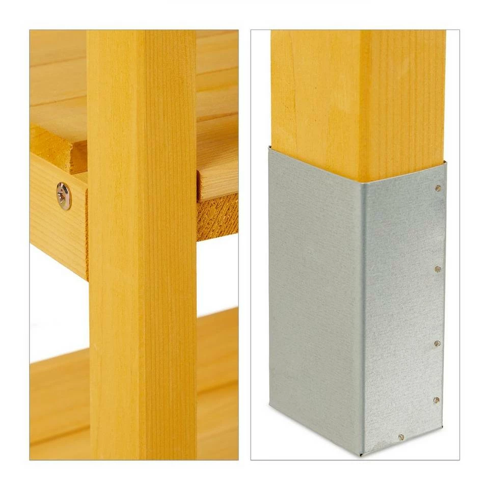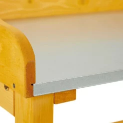- Material: Stabiler Pflanztisch aus hellbraunem Holz – Mit Arbeitsplatte aus galvanisiertem Eisen