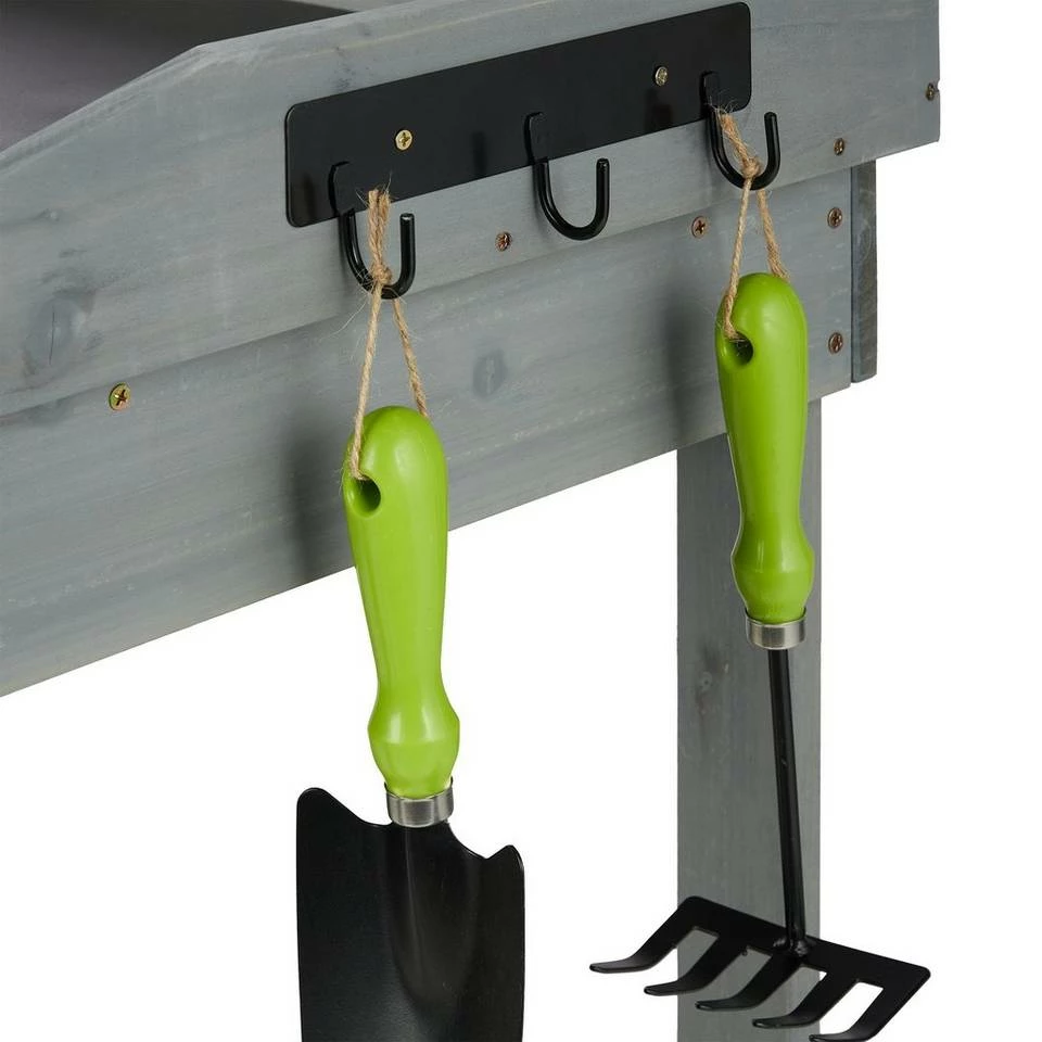 - Stauraum: Gärtnertisch mit 2 extra Ablagen, einer Schublade u. 3 Haken für Werkzeug, Handschuhe uvm.