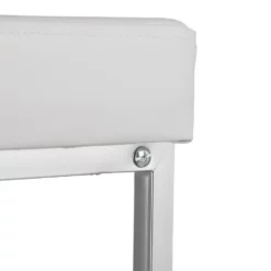 - Elegantes Design: Polsterhocker mit glänzendem Gestell aus verchromtem Eisen und weißer Sitzfläche