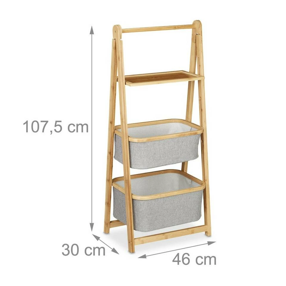 - Details: Korbregal mit 2 Körben + 1 Ablagefläche – Maße Regal H x B x T: ca. 107,5 x 46 x 30 cm