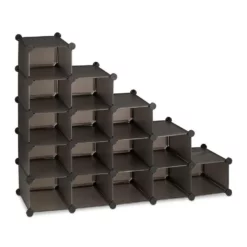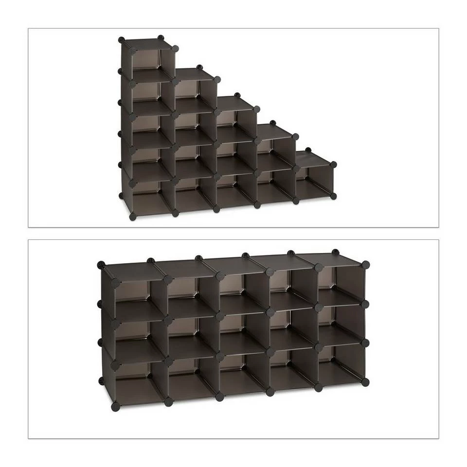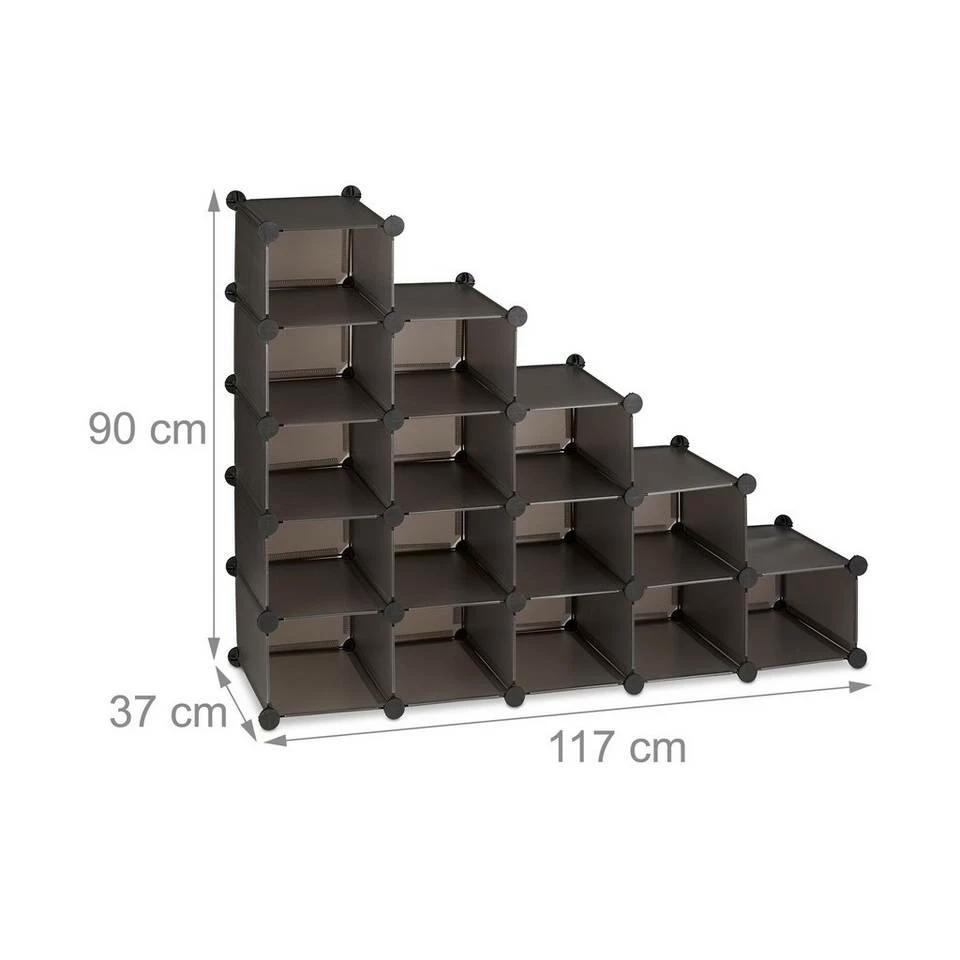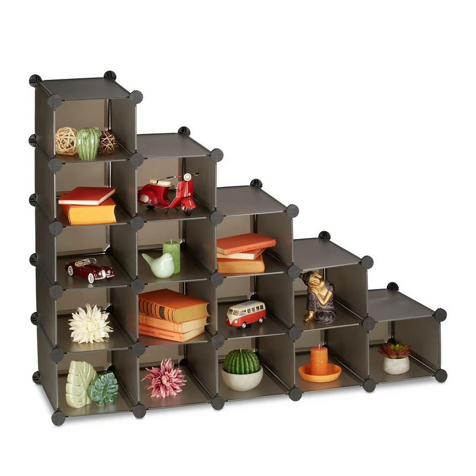 Platzsparendes Steckregal aus Kunststoff Wenn Du keine Lust auf schwere, massive Möbel hast, ist dieses flexible Regalsystem mit 15 Fächern zu empfehlen. Die Komponenten bestehen aus pflegeleichtem Kunststoff und sind mit Metall verstärkt. Dank des einfachen Stecksystems kannst Du das Kunststoffregal schnell und einfach aufbauen. Ob als Stufenregal unter Dachschrägen, als Bücherregal im Wohnzimmer oder zur Aufbewahrung von Spielzeug im Kinderzimmer: Stecke das Würfelregal auf Deinen Bedarf abgestimmt jederzeit individuell zusammen.