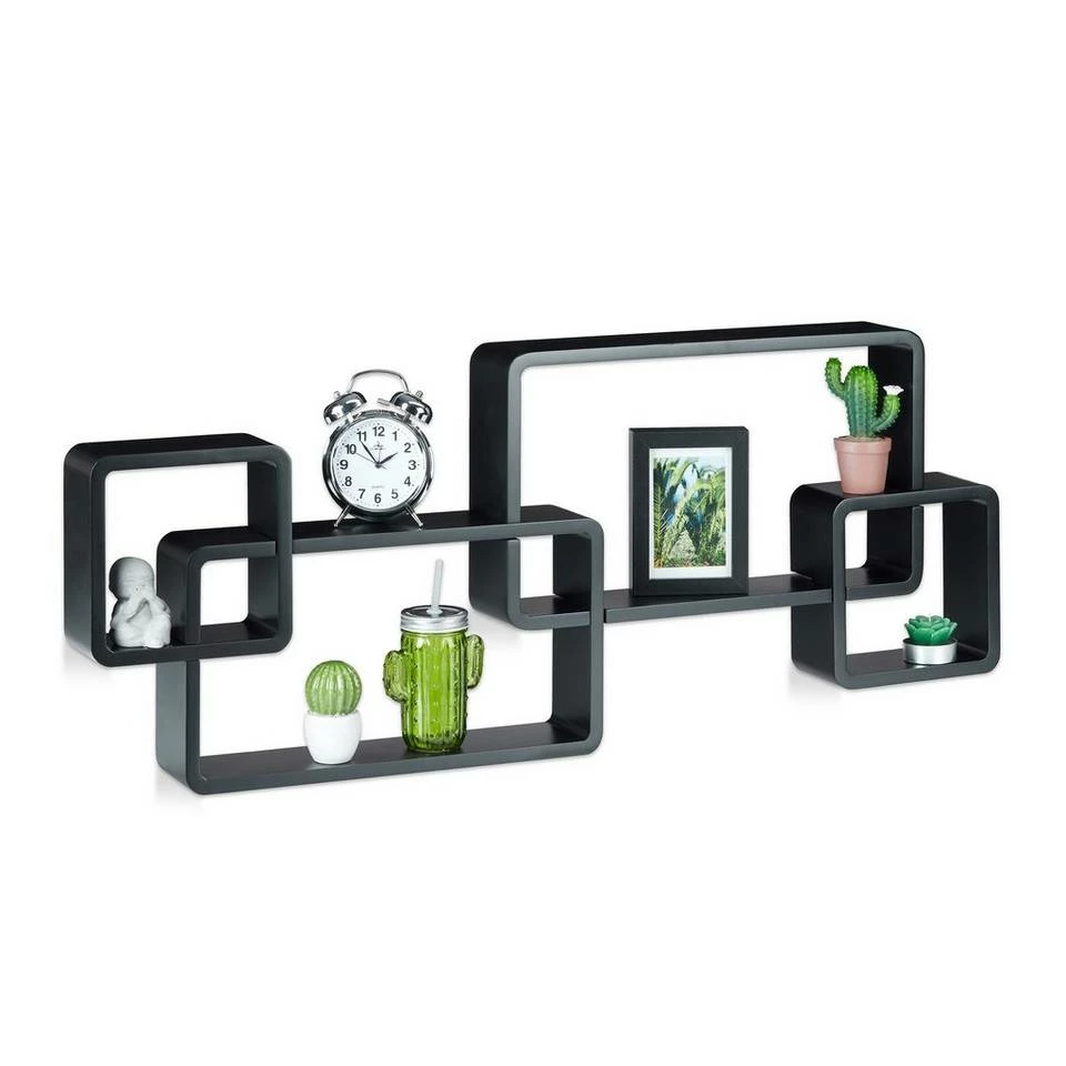 Dekoratives Schweberegal mit Cubes Wenn Sie leere Wände mit einem echten Eyecatcher verschönern wollen, ist dieses Cube Regal ein heißer Tipp. Von langweiligen Symmetrien will es nichts wissen, sondern zieht mit seinen Regaleinheiten in unterschiedlichen Formen und Größen neugierige Blicke nahezu magisch an. Damit werden Vasen, Schatullen und andere Dekoartikel von dem Hängeregal erstklassig in Szene gesetzt. Um das Wandregal zu montieren, brauchen Sie nicht zur Bohrmaschine greifen, denn die Teile werden einfach zusammengesteckt.