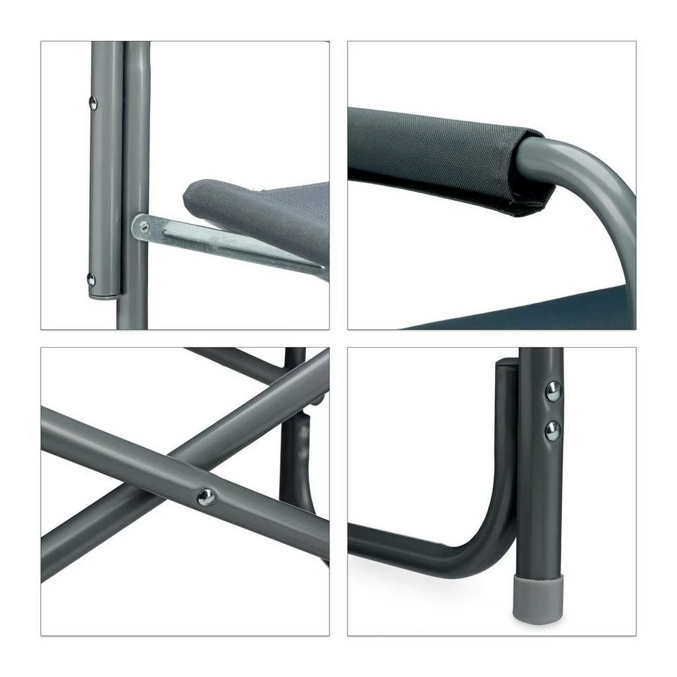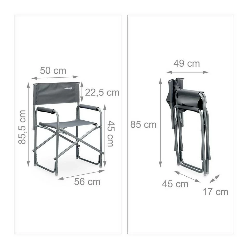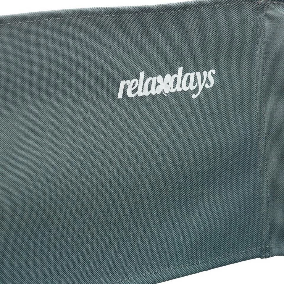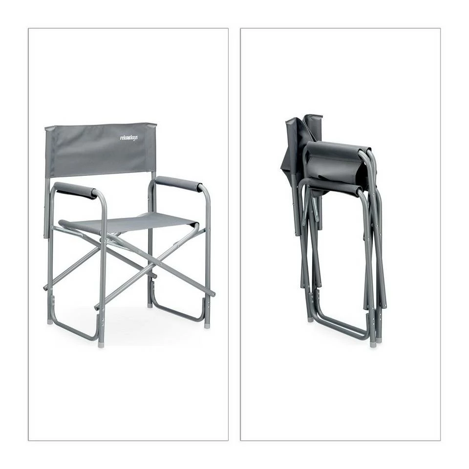 - Mit Logo: Der hellgraue Regiestuhl im modernen Design hat RELAXDAYS aufgedruckt – Nutzen Sie den Faltstuhl für Outdoor-Aktivitäten wie Festivals, Zelten, Angeln oder Grillpartys