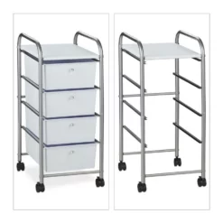 Universell nutzbarer Schubladenwagen Der Beistellwagen ist ein praktischer Helfer im Haushalt, den Sie äußerst vielseitig einsetzen können. Als Badwagen ist er ebenso geeignet, wie als Rollregal in Küche & Büro, als Bastelwagen im Kinderzimmer oder als Friseur- & Kosmetikwagen im Salon. In den 4 Schubladen aus Kunststoff können Sie all Ihre Utensilien sortieren & übersichtlich verstauen. Bei Bedarf sind die Fächer vollständig entnehmbar & leicht zu reinigen. Dank der 4 Räder lässt sich der Haushaltswagen flexibel bewegen.