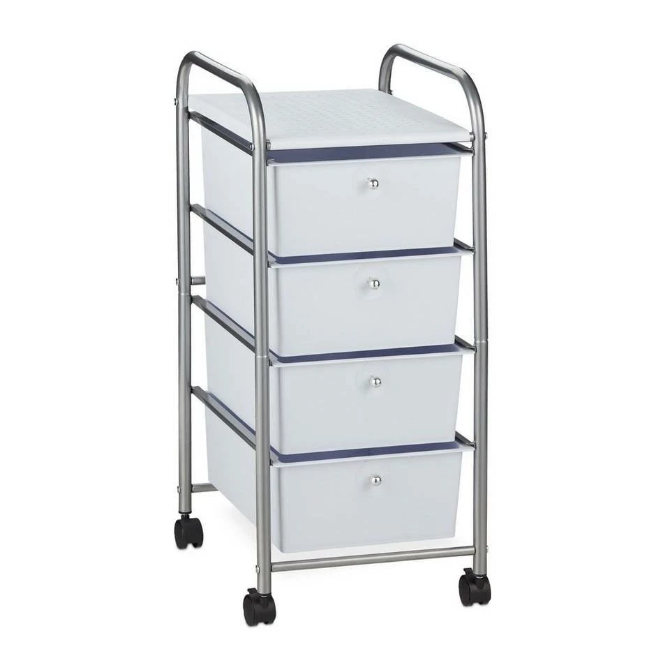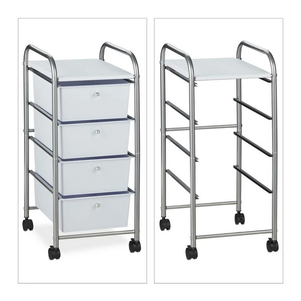 - Viel Platz: Rollwagen mit 4 Schubladen und einer Ablage bietet praktischen Stauraum – In Silber-Weiß
