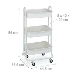 - Praktisch: Weißes Rollregal aus Metall zur optimalen Raumausnutzung – HBT: ca. 84 x 44,5 x 35,5 cm