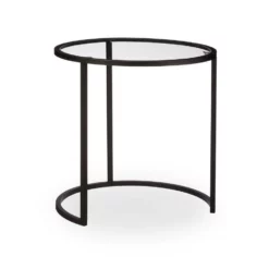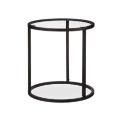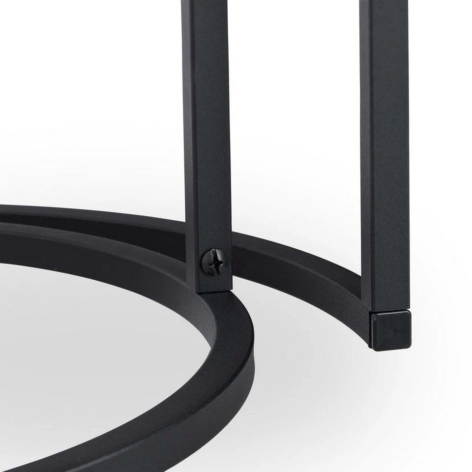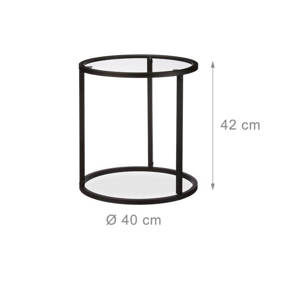 - Dekoratives Set: 2 runde Couchtische mit Tischplatten aus Glas auf einem schwarzen Metallgestell