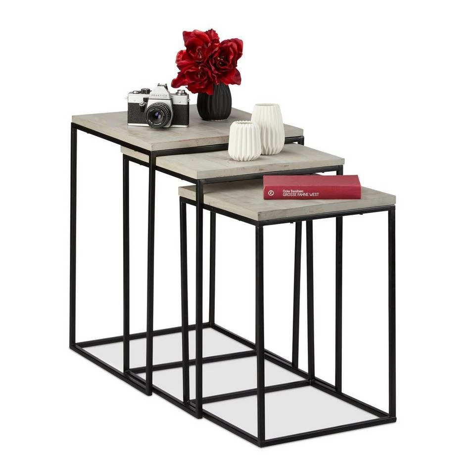 - Look: Eckige Satztische in industriellem Design mit weißem Mangoholz und schwarzem Eisengestell
