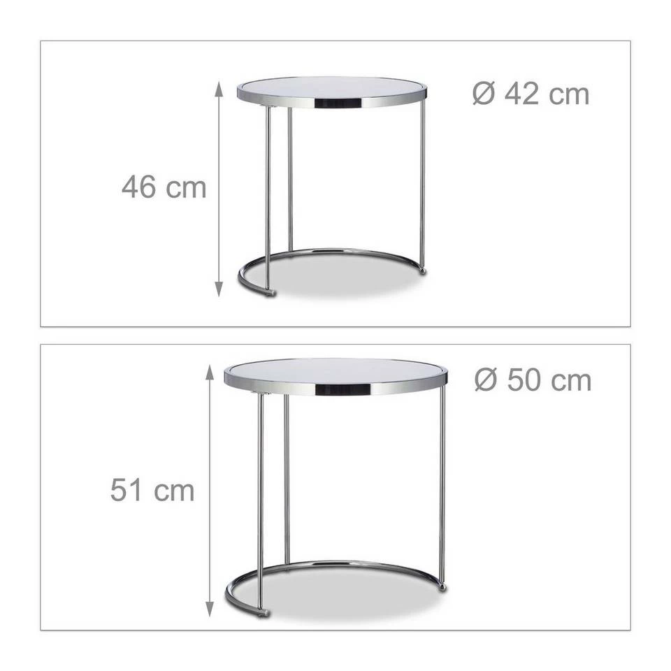 - Rundes Design: In edler Chrom-Optik (Metallgestell, Chrom) sind die Beistelltische eine ideale Ergänzung in Ihrer Wohnung – Durch runde Standfüße komplett untereinander schieben