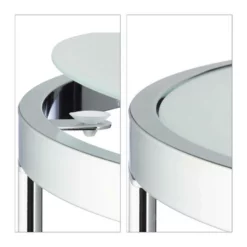 Satztische rund – mit Chromgestell Einrichtung ein. Durch das Chromgestell und das verwendeten Milchglas ist das Tisch-Set ein modernes Accessoire für die eigenen vier Wände. Die großen und kleinen Ablageflächen bietet Platz für Pflanzen, Zeitschriften, Fernbedienungen und vieles mehr. Durch die runde Öffnung kann der kleine Tisch unter den großen Tisch geschoben werden. So spart man sich bei Bedarf Platz. Setzen Sie diese Tische in Silber in Ihrem Wohnzimmer, Schlafzimmer oder in einem Loft ein. Verwenden Sie die Tische z.B. als Couchtische in Ihrem Wohnzimmer oder als Ablage in Ihrem Flur.