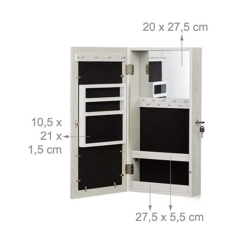 - Mit Spiegel: Auf der Innenseite vom Schmuckschränkchen ist ein Spiegel – H x B: ca. 20 x 27,5 cm