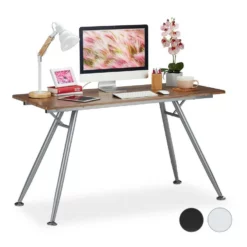 Platzsparender Büroschreibtisch im schlichten Design Um sich Zuhause im Homeoffice pudelwohl zu fühlen, fehlt nur der richtige Arbeitstisch. Das moderne Design fügt sich gut in jedes Arbeitszimmer ein und bietet mit viel Stauraum unter dem Tisch Platz für einen Rollcontainer, den Rechner oder einen Papierkorb. Jugendliche benötigen einen PC-Tisch, um Ihre Hausaufgaben ungestört zu erledigen. Auf der großflächigen Arbeitsplatte ist dafür und auch für einen Laptop Platz. Die Füße des Bürotisches sind drehbar und passen sich Bodenunebenheiten an.