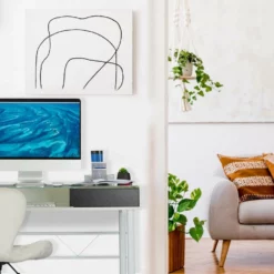 - Aufbewahrung: 2 Schubladen und eine mittlere Ablage – Mit dem modernen Bürotisch die Ordnung halten