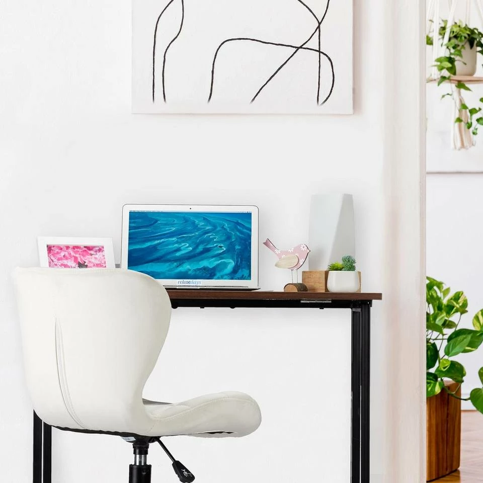 Klappbarer Bürotisch für Home Office, Jugendzimmer und mehr Dieser Computertisch schafft einen flexiblen Arbeitsplatz im Büro oder Zuhause. Platzieren Sie Unterlagen, Büroutensilien, Monitor oder Laptop auf der schicken Arbeitsfläche aus Holz, die von dem robusten Eisengestell getragen wird. Bei Bedarf können Sie den Computertisch einfach zusammenklappen & platzsparend verstauen. Von dieser Funktionalität profitieren vor allem Studenten mit wenig Stauraum oder Personen, die im Home Office arbeiten. Der moderne Look macht auch im Jugendzimmer einiges her.