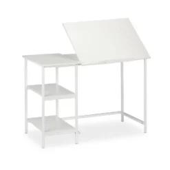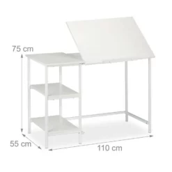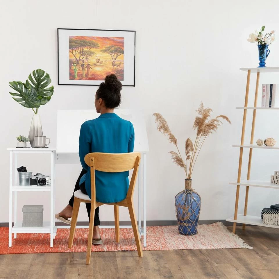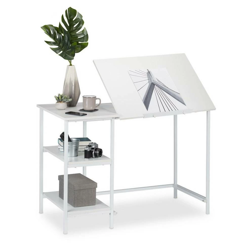 Architektentisch zum Schreiben und Zeichnen Arbeiten wird mit der neigbaren Arbeitsfläche dieses Schreibtisches einfacher! Sie können eine bequeme Haltung einnehmen und haben gleichzeitig einen guten Überblick über Ihre Arbeiten. Der Tisch lässt sich flexibel für Laptop- oder Zeichenarbeiten benutzen und kann dementsprechend eingestellt werden. 3 Ablagen erleichtern die Ordnung von Materialien und sorgen dafür, dass diese immer griffbereit sind. Der Zeichentisch eignet sich sowohl für das Home Office, als auch das Büro.