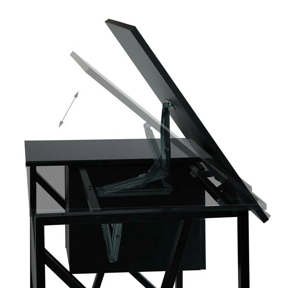 Arbeitstisch für Home Office und Zeichenkünste Dank der in Stufen einstellbaren Arbeitsfläche ist der Bürotisch sowohl als Laptoptisch als auch als Zeichentisch geeignet, dessen fixierbarer Halter Technik oder Zeichenunterlagen bei einer Neigung an Ort und Stelle hält. Im Home Office, Büro oder im Atelier wird dieser Arbeitstisch Ihr Ort für Produktivität und Kreativität sein. In den beiden Schubfächern können Sie dabei ablenkenden Kleinkram und Büro-Utensilien verstauen und sich ganz auf das Schaffen konzentrieren!