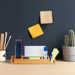 Büro Organizer für Übersichtlichkeit Platz für Stifte, Zettel, Büroklammern und vieles mehr bietet dieser Schreibtisch Organizer aus natürlichem Bambus. In verschiedenen Fächern können vor allem Stifte, aber auch Klebezettelblöcke und Briefe aufbewahrt werden. Durch das flache Design behalten Sie leicht den Überblick über den Inhalt Ihres Tischorganizers und halten Ihren Schreibtisch stets aufgeräumt und übersichtlich. Dadurch können Sie sich fokussiert Ihrer Arbeit widmen. Das schlichte Design passt ins Büro und Ihr zu Hause.
