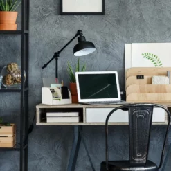 Ordnungsbox für den Arbeitsplatz Mit diesem Schreibtischorganizer wird Unordnung kein Thema mehr am Arbeitsplatz sein. In 4 Fächern und einer Schublade können Briefe, Stifte und weitere Utensilien ordentlich und griffbereit aufbewahrt werden. Der edle Look des Kunstleders verleiht Ihrem Schreibtisch zu Hause oder im Büro im Handumdrehen einen hochwertigen Touch. Dieser Büro Organizer hat außerdem eine Kabelführung, mit der Sie das Handy laden können, während es in Ihrem Blickfeld steht – Sie werden keinen Anruf mehr verpassen.