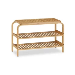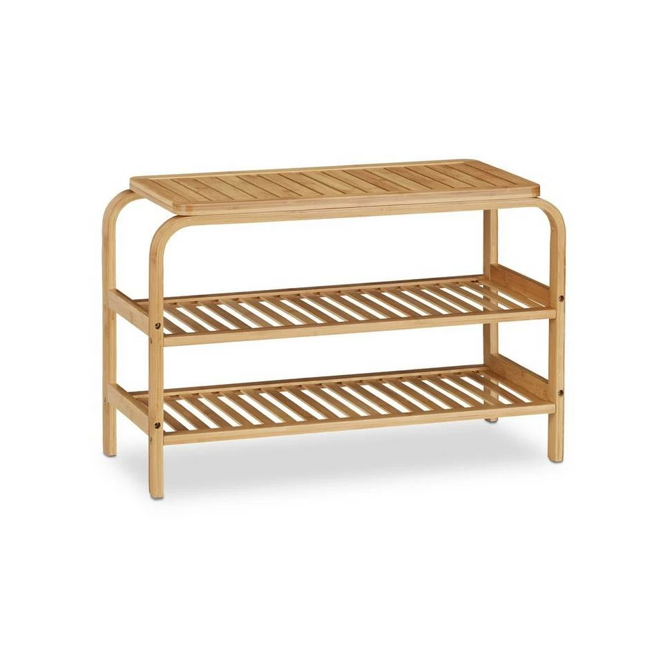 Schuhaufbewahrung für die Wohnung Diese Schuhbank ist ideal für jegliche Aufbewahrung im Flur oder an der Garderobe. Bis zu 6 Paare Ihrer Sneaker, Sandalen und mehr passen auf die beiden Ablagen. Auch Ordnungsboxen mit Schals und Tüchern finden auf diesen Platz. Beim Schuhe anziehen können Sie sich bequem auf die Fläche setzen und haben zur Not bei Besuch eine zusätzliche Sitzgelegenheit. Das natürliche und zeitlose Design bringt Wärme in jeden Raum Ihrer Wohnung: Im Badezimmer lässt sie sich zum Beispiel als Ablage nutzen.