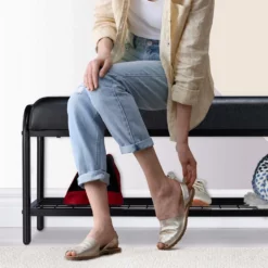 - Dielenmöbel: Die schwarze Schuhbank im industriellen Look setzt moderne Akzent in Ihrem Zuhause