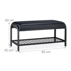 Gepolsterte Flurbank als Schuhablage Im Ihrem Flur stehen viele Schuhe herum und versperren den Weg? Dieses Schuhregal mit integrierter Sitzbank ist die Lösung für Ihr Problem! Auf einer geräumigen Ablagefläche können Sie Schuhe lagern und sich zum Schuhe anziehen auf die Sitzfläche setzen. Das Industriedesign der Bank fügt sich ideal in Ihre Garderobe ein und ist ein edler Blickfang im Eingang Ihres Zuhauses. Auf der Ablage lassen sich auch Aufbewahrungsboxen lagern, in denen Ihre Schals und Handschuhe ordentlich verstaut sind.
