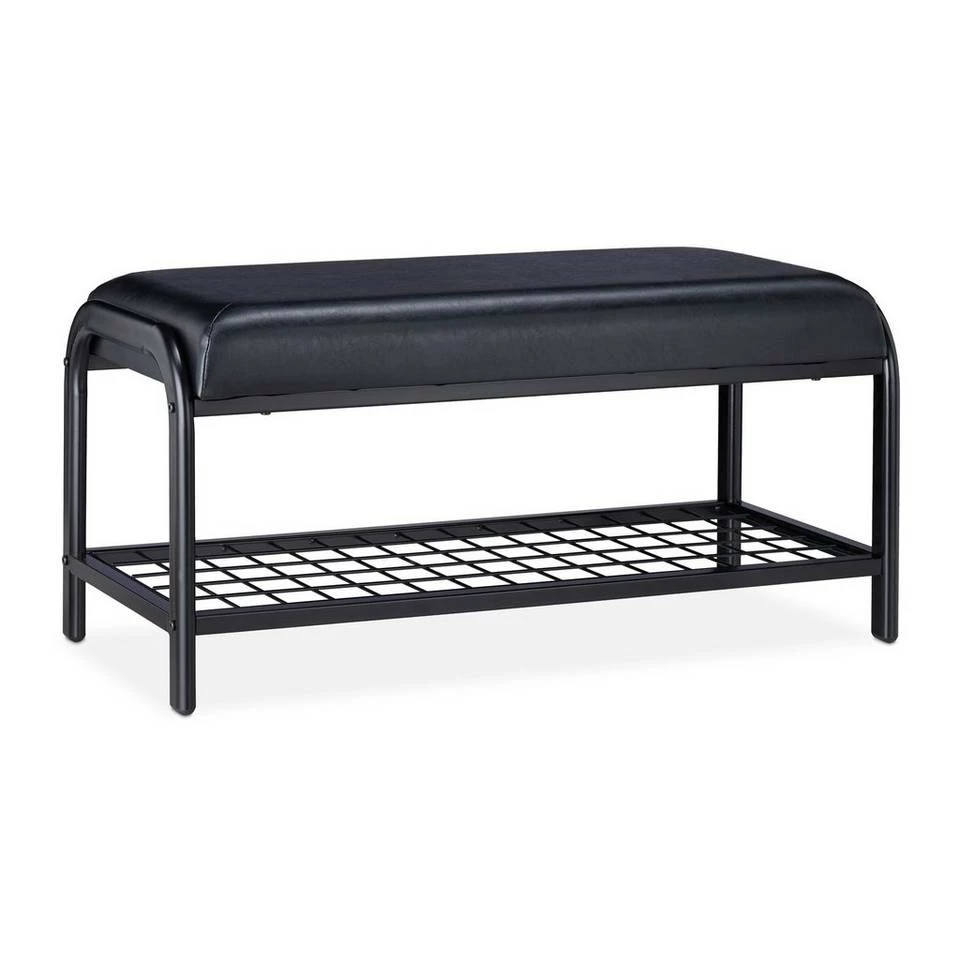 - Basics: Sitzbank aus schwarzem Stahlgestell und Sitzfläche aus Kunstleder – HBT: ca. 40 x 85 x 40 cm
