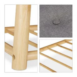 Schuhbank mit viel Stauraum Die schmale Flurbank mit viel Stauraum passt in jede Diele und bietet zugleich viel Stauraum für Schuhe und Accessoires. Die 2 Schuhablagen fassen zusammen bis zu 8 Paar Schuhe. Das bequeme Sitzpolster ist nicht nur eine praktische Sitzgelegenheit beim An- und Ausziehen der Schuhe, sondern auch ein Klappdeckel. In der Garderobenbank befinden sich 2 zusätzliche Fächer für Schuhputzzeug, Schals, Mützen und mehr. Das Schuhregal aus Bambus macht auch als Bettbank im Schlafzimmer eine gute Figur.