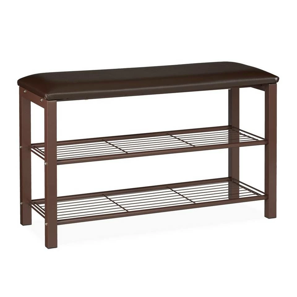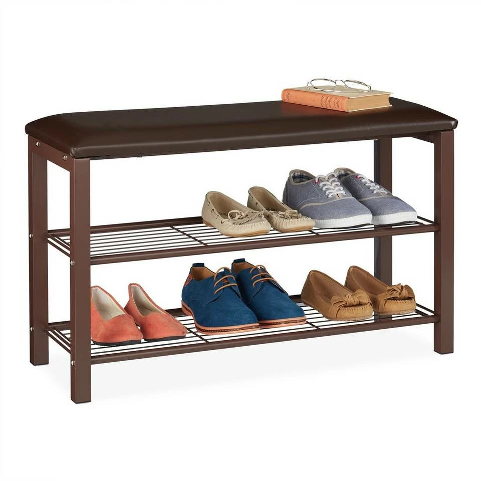 - Basics: Brauner Schuhständer mit Polsterung und Metallgestell – H x B x T: ca. 48 x 80 x 30 cm