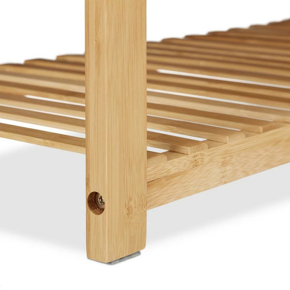 Schuhschrank mit Sitzfläche für den Flur Wer sich beim Schuhe Anziehen gerne hinsetzt, für den ist diese Sitzkommode optimal geeignet. Die gemütliche Sitzfläche aus grauem Stoff lädt zum Verweilen ein. Zudem ist unter dem Polster ein Fach versteckt. Dafür müssen Sie dieses einfach nach oben klappen. In dem Fach können Sie Accessoires wie Tücher, Handschuhe, Mützen oder auch Schuhputzmittel verstauen. Daneben kann die Bambusbank auch als Schuhregal genutzt werden. Auf den Ebenen ist Platz für bis zu 7 Paar Schuhe.
