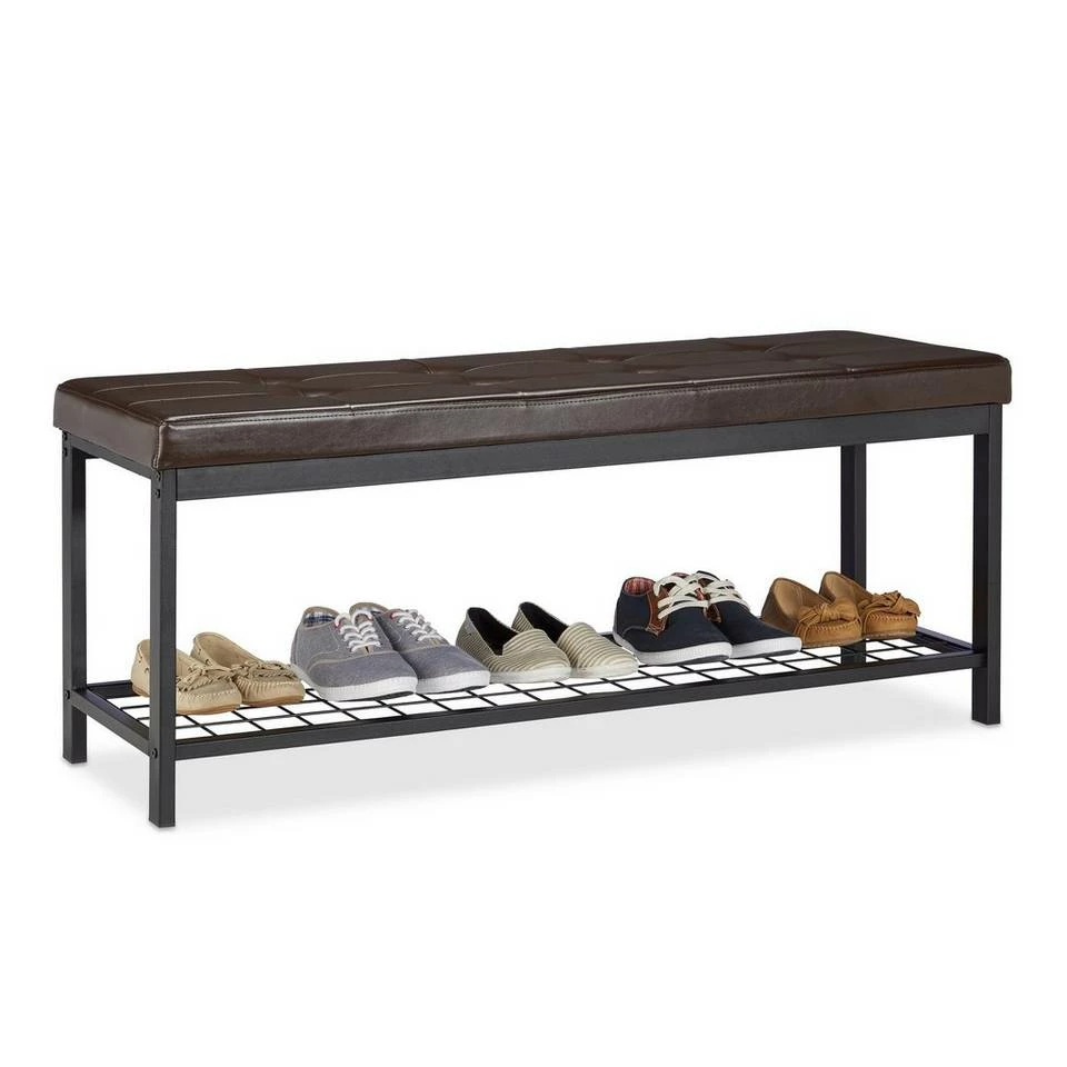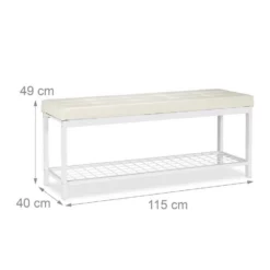 Multifunktionales Schuhregal mit Sitzfläche Die Schuhbank XXL verbindet viele Talente, die Ihnen im Flur, Wohn- oder Schlafzimmer nützen. Wenn Sie sich beispielsweise in der Diele die Schuhe anziehen möchten, können Sie zu diesem Zweck auf der bequemen Polsterung Platz nehmen. Für Ihre Schuhe benötigen Sie keinen separaten Schuhschrank, denn die Flurbank verfügt über eine geräumige Gitterablage. Das offene Design ermöglicht Ihnen, von allen Seiten auf das Schuhgestell zuzugreifen. Das Schuhregal zum Sitzen ist aber nicht nur praktisch, sondern passt darüber hinaus mit seiner angenehmen Optik hervorragend zu vielen Einrichtungsstilen.