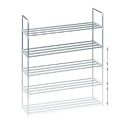 Schuhregal – Leicht und stabil Bekommen Sie viel Besuch? Oder haben Sie selbst Unmengen an Schuhen? Dann ist dieses Schuhregal genau das Richtige für Sie. Auf 3 Ebenen haben Sie ausreichend Platz, um Sneaker, Sandalen oder auch Absatzschuhe unterzubringen. Auch Stiefel mit hohem Schaft finden auf der obersten Ebene Platz. Auf jeder Etage passen – je nach Größe – bis zu 4 Paar Schuhe. Dank der einfachen Steckverbindung können Sie die Schuhablage beliebig erweitern. Durch die Ablagen aus Metallrohren kann Nässe einfach ablaufen. Die Schuhaufbewahrung eignet sich auch ideal als Ordnungshelfer beim Camping.